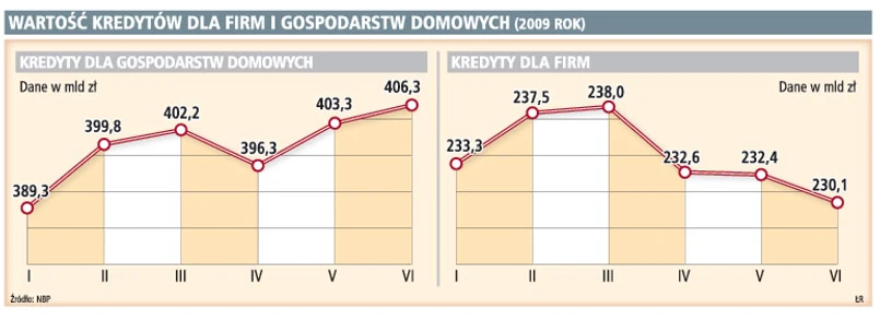Od początku roku systematycznie spada wartość kredytów dla firm, natomiast pożyczki dla gospodarstw domowych rosną kilkakrotnie wolniej niż przed rokiem.