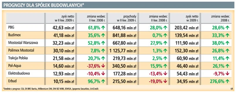 Największe spółki budowlane z warszawskiej giełdy zarobiły w II kwartale 2009 r. o 28 proc. więcej niż przed rokiem. Na korzyść sektora działają kontrakty zawarte w czasach boomu budowlanego.