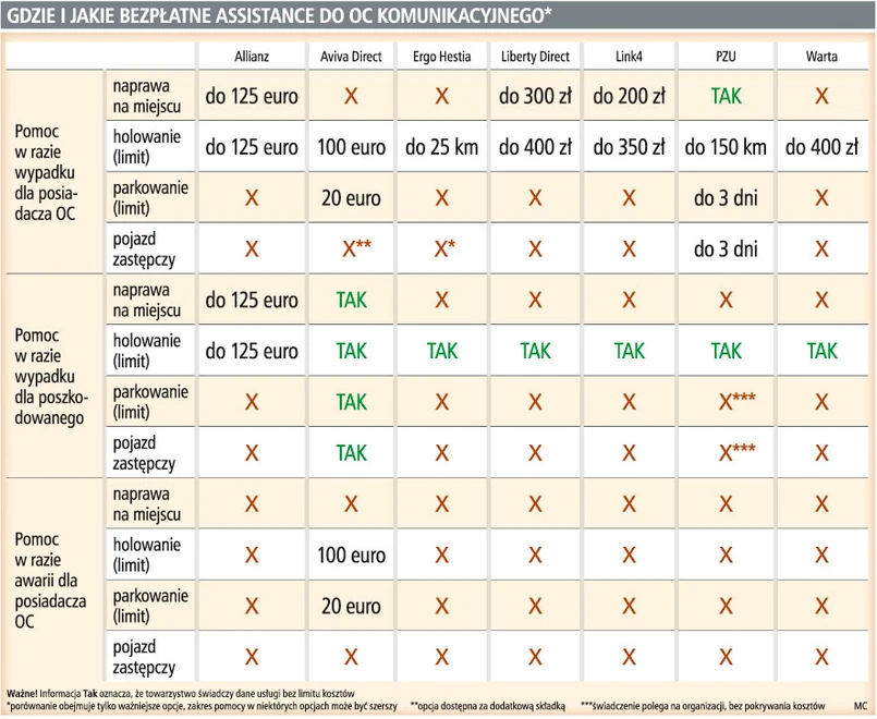 W Allianz pojawia się ograniczenie kosztów holowania auta poszkodowanego do 125 euro. Jeśli rachunek za holowanie poszkodowanego wyniesie np. równowartość 200 euro, to 125 jest pokrywane z polisy assistance, a resztę
