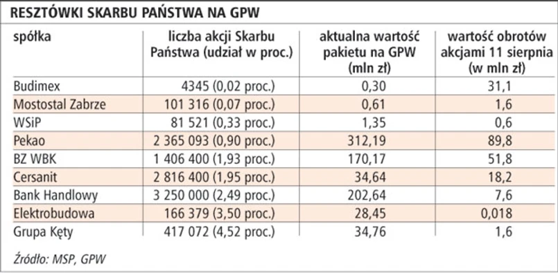 Podobnie będzie w przypadku innych większych spółek, których pakiety mogą trafić na giełdę, m.in. TP (1,04 proc. w 2009 roku i 3,11 proc. w 2010 roku), Lotosu (do 13 proc.), BZ WBK i Banku Handlowego, które mają trafić na rynek w przyszłym roku. W tym czasie SP będzie też szukał nabywców np. na ponad 31 proc. Mennicy Polskiej. Nie wyklucza także sprzedaży na giełdzie ok. 56 proc. Bogdanki.