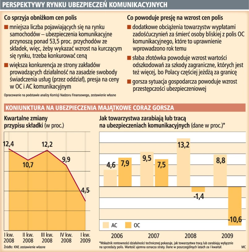 Choć towarzystwa walczą na mniejszym niż rok temu rynku ubezpieczeń samochodowych, nie wpłynie to na spadek cen polis. Kryzys spowodował, że coraz więcej ubezpieczycieli stawia na rentowność, a nie na udział w rynku. Spadków cen można spodziewać się tylko w przypadku AC kupowanego dla nowych samochodów.