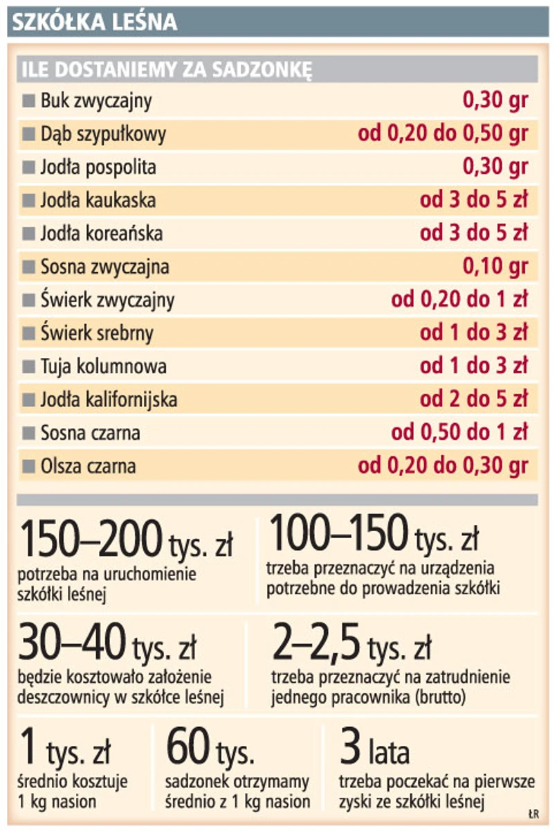 Mając kilka hektarów ziemi, można już pomyśleć o założeniu tzw. szkółki leśnej. Będzie ona jednak opłacalna wtedy, gdy poza drzewami i krzewami leśnymi znajdą się w niej także drzewa i krzewy ozdobne. Dlatego, że nadleśnictwa, w związku ze spadkiem popytu na drzewo, są obecnie w stanie same wyprodukować sadzonki na własne potrzeby. Nie muszą więc pozyskiwać materiału z zewnątrz.