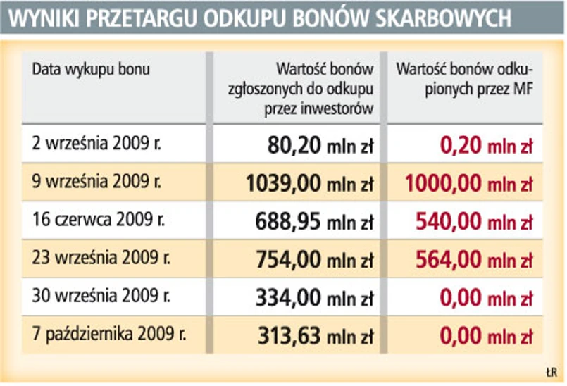 Inwestorzy zgłosili do odkupu bony o wartości przekraczającej 3,2 mld zł. Resort zaakceptował oferty za 2,1 mld zł. MF jest zadowolone z wyników.