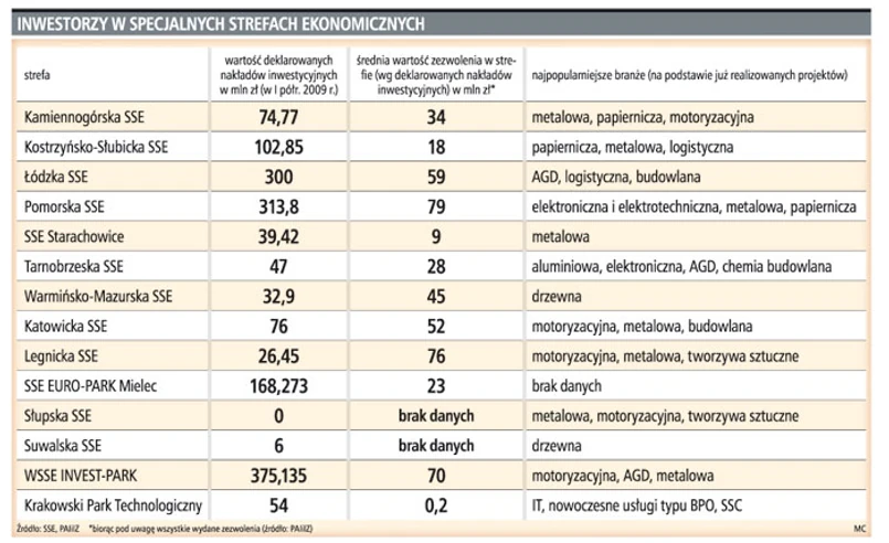 Specjalne strefy ekonomiczne w I półroczu 2009 r. zezwoliły na prowadzenie działalności gospodarczej na swoim terenie 58 przedsiębiorstwom. To mniej niż w analogicznym okresie zeszłego roku, kiedy zezwolenia otrzymało 99 firm.