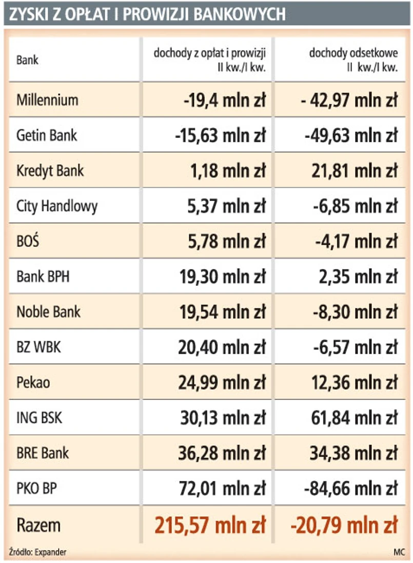 W II kwartale giełdowe banki zarobiły na prowizjach o 200 mln zł więcej niż w I – wynika z wyliczeń Expandera. Z nawiązką pokrywa to straty poniesione na wojnie depozytowej.
