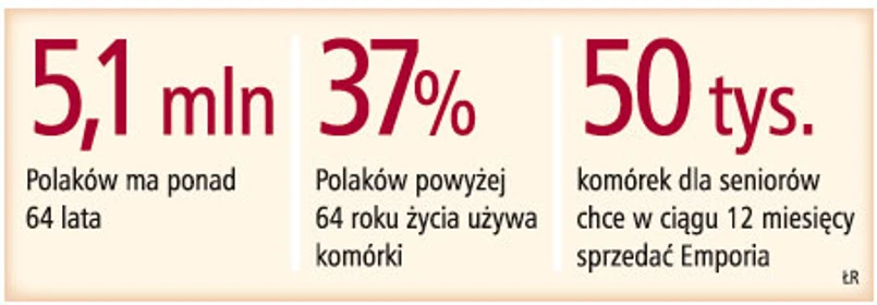 Z badań MillwardBrown SMG/KRC wynika, że w Polsce z komórki korzysta tylko 37 proc. osób powyżej 64 roku życia. Jednocześnie ten segment rynku rośnie najszybciej. Ericsson, producent sprzętu telekomunikacyjnego, podaje, że 2006 roku do używania komórki przyznawało się 23 proc. Polaków powyżej pięćdziesiątki, a w tym roku już 54 proc.