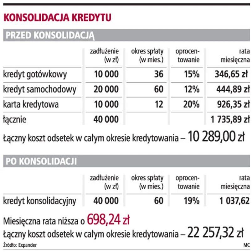 - Te problemy dotyczą najczęściej kredytów gotówkowych, ich konsolidacja bardzo rzadko się opłaca - mówi Paweł Majtkowski z Expandera.