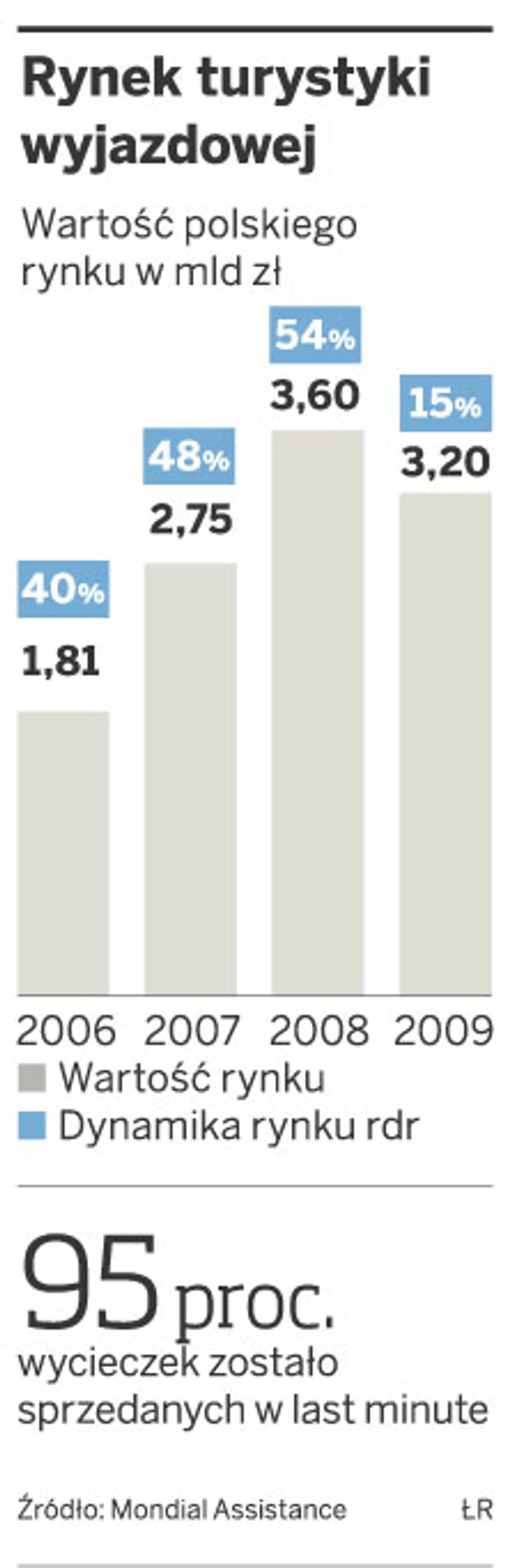 Generalnie ten rok nie będzie dobry dla polskiej czarterowej turystyki wyjazdowej. Ale nie będzie tak zły, jak prognozowano jeszcze pod koniec I półrocza. Spadek wartości rynku czarterowej turystyki wyjazdowej, wynoszący na koniec 2008 roku 3,6 mld zł, wyniesie 10–15 proc., a nie 25 proc. W sezonie letnim sprzedaż wyraźnie bowiem wzrosła.