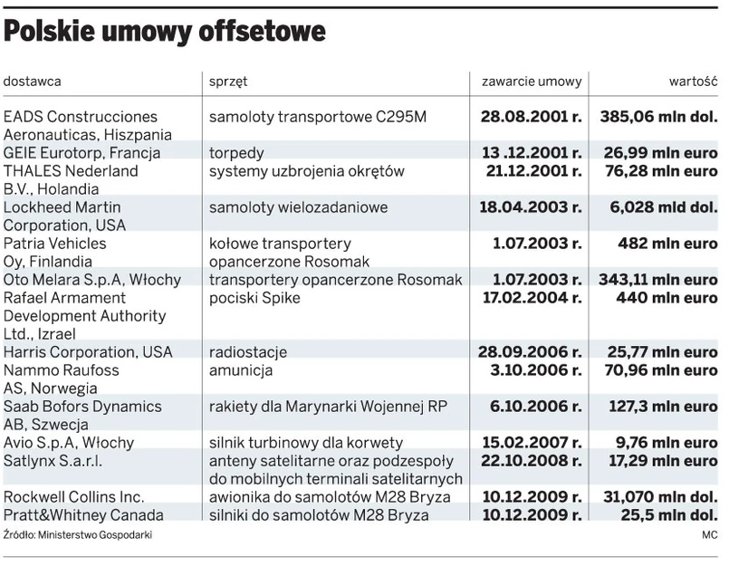 Dlatego przetarg odbędzie się w trybie procedury offsetowej, przy której liczy się nie tylko cena, ale także zobowiązania dotyczące inwestycji w polski przemysł. By ją przeprowadzić, konieczne jest sprecyzowanie parametrów ekonomicznych, technicznych i bojowych (dotyczących uzbrojenia) oraz serwisu naziemnego. Jak się dowiedzieliśmy, MON ma już gotowe założenia techniczno-bojowe, które będą istotne przy przetargu.