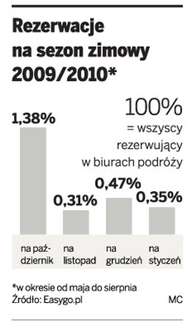 – W sezonie zimowym touroperatorzy ponoszą mniejsze ryzyko. Korzystają głównie z usług linii rejsowych, a nie czarterów, a za hotele należności są regulowane dopiero po wysłaniu klienta na wycieczkę – tłumaczy Jacek Dąbrowski.
