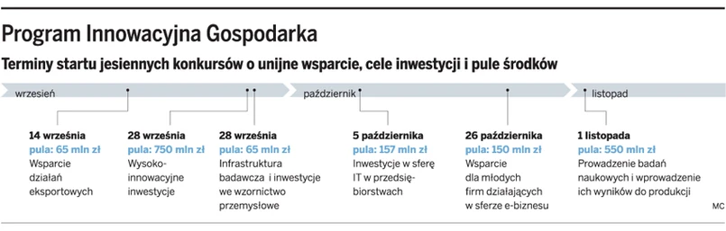 Mowa m.in. o Działaniu 4.4 w programie Innowacyjna Gospodarka, które w poprzednich naborach cieszyło się olbrzymim zainteresowaniem. Teraz może być ono mniejsze, bo Ministerstwo Rozwoju Regionalnego zdecydowało o dopuszczeniu do konkursu tylko małych i średnich przedsiębiorstw. Zostały także zwiększone wymagania stawiane inwestycjom.