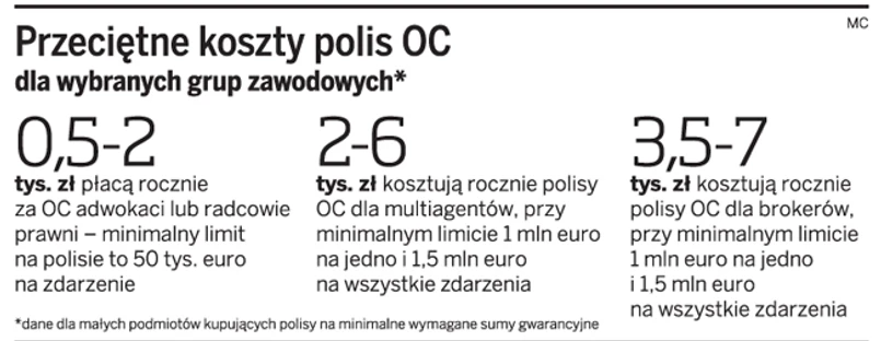 Istotne też będzie, jaki minimalny limit na polisach ustali ministerstwo. W przypadku adwokatów czy radców to 50 tys. euro na zdarzenie.