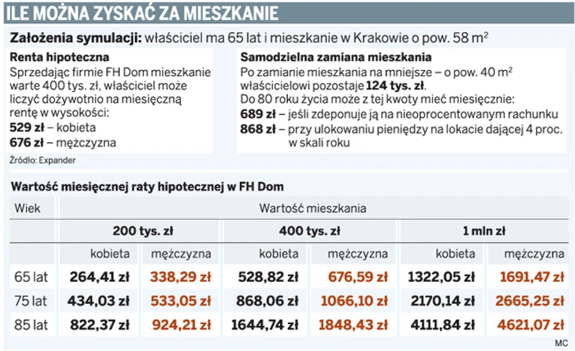 Tymczasem z analiz Expander wynika, że zamiana mieszkania na mniejsze jest dla emerytów, którzy chcą poprawić swoją sytuację materialną, dużo lepszym rozwiązaniem.
