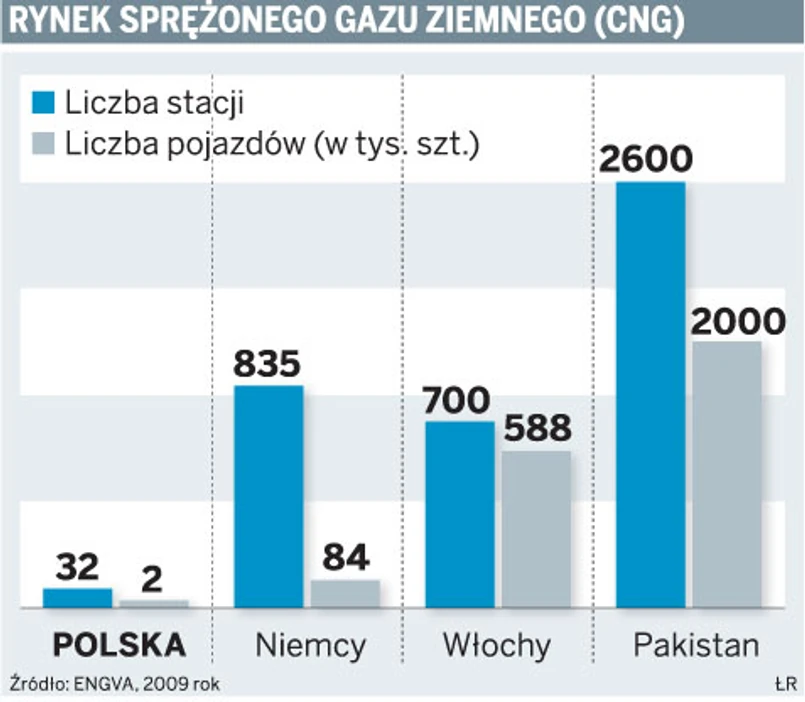 Inaczej jest w Polsce. Dlaczego? Zdaniem ekspertów to efekt praktycznego monopolu Polskiego Górnictwa Naftowego i Gazownictwa na rynku gazu i niechęć spółki do inwestowania w sieć stacji CNG. Z tego powodu staliśmy się białą plamą na gazowej mapie Europy.
