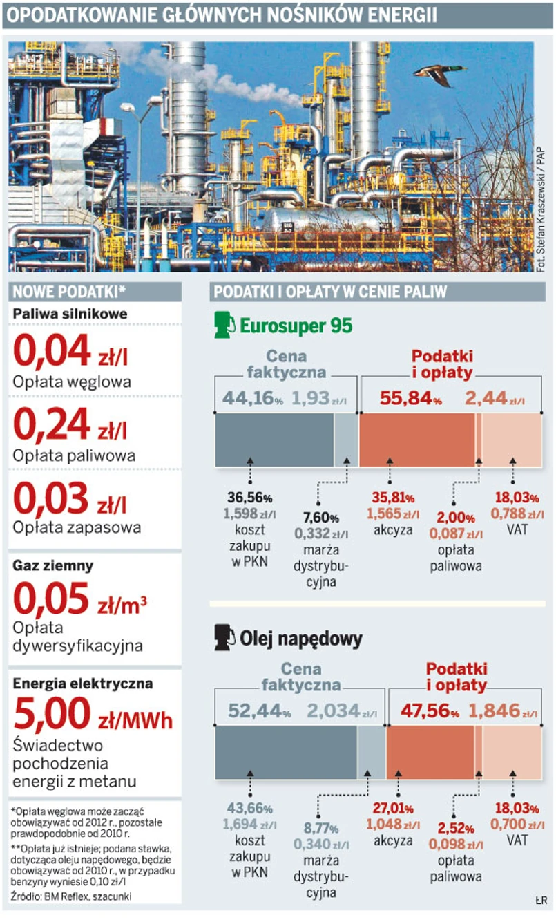 Nie wiadomo jeszcze, kiedy dokładnie miałyby wejść w życie nowe podatki od głównych nośników energii. Eksperci spodziewają się, że opłaty: zapasowa, dywersyfikacyjna i tzw. metanowa mogą obciążyć nasze budżety domowe jeszcze w 2010 roku. Opłata węglowa zacznie obowiązywać prawdopodobnie dopiero w 2012 roku.