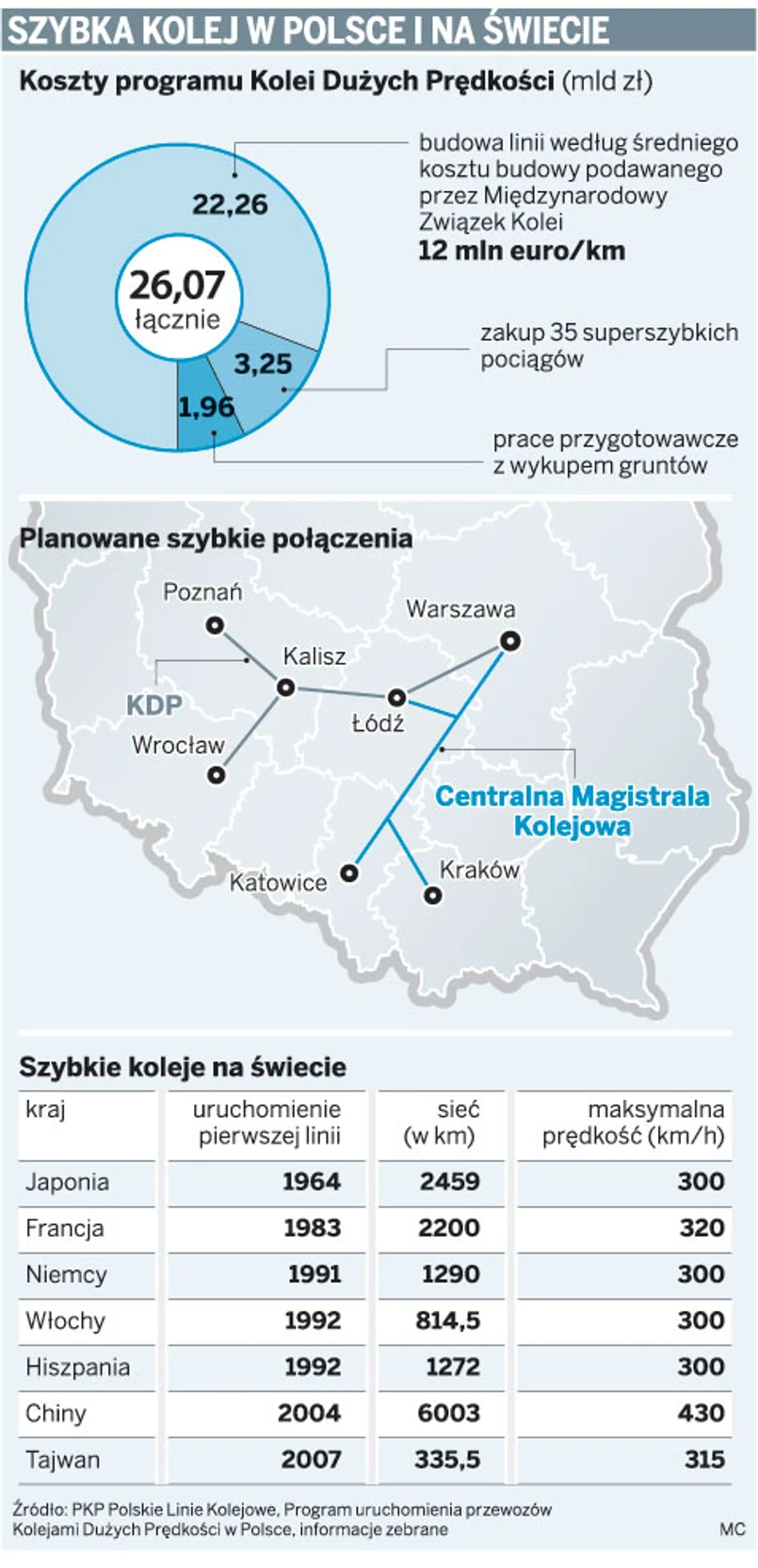 Obietnica budowy linii kolejowej dla pociągów mknących z prędkością 360 km/h pojawiła się w 2007 roku. Po dwóch latach opowiadania o superinwestycji przygotowania wreszcie nabierają tempa. W styczniu, po ponad roku negocjacji z biurami projektowymi i firmami doradczymi, ma zostać wybrany wykonawca kluczowego dokumentu dla rozpoczęcia budowy – studium wykonalności inwestycji. Znajdą się w nim odpowiedzi dotyczące ostatecznego przebiegu trasy, sposobu i kosztów budowy, cen biletów i uwarunkowań technicznych, np. zasilania pociągów. Na podstawie studium zostanie podjęta decyzja, jaki podmiot i w jakiej formule finansowej będzie realizował projekt.