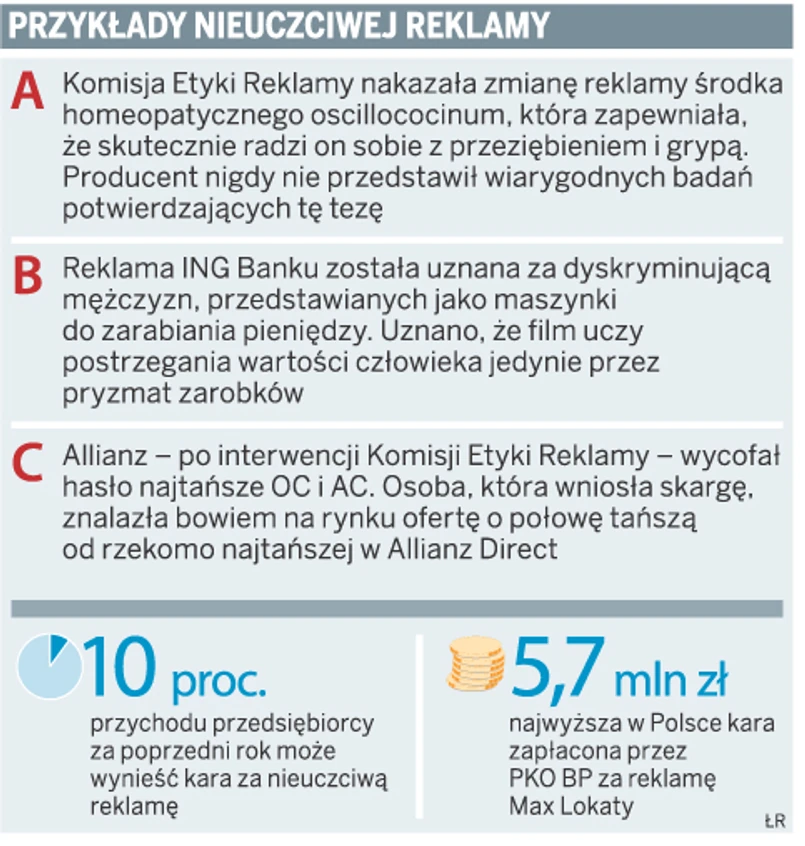 Polska ustawa o zwalczaniu nieuczciwej konkurencji zakazuje reklamy, która jest sprzeczna z przepisami. Na przykład leki dostępne wyłącznie na receptę mogą być reklamowane tylko w pismach specjalistycznych. Zakazane jest wszelkie naruszenie godności człowieka czy dobrych obyczajów, działanie zmierzające do niedoinformowania, dezorientacji, wywołania błędnego przekonania u klienta, a także wykorzystywania jego niewiedzy lub naiwności.