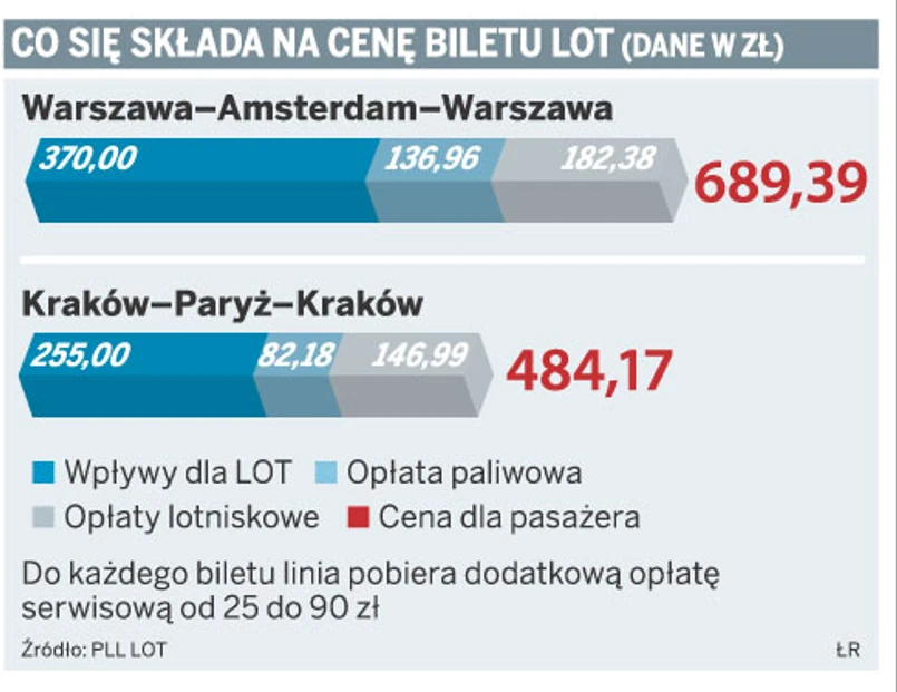 Reszta trafia do portów lotniczych w ramach opłat lotniskowych. Te proporcje są jeszcze bardziej niekorzystne dla linii w przypadku tras do Amsterdamu czy Frankfurtu.