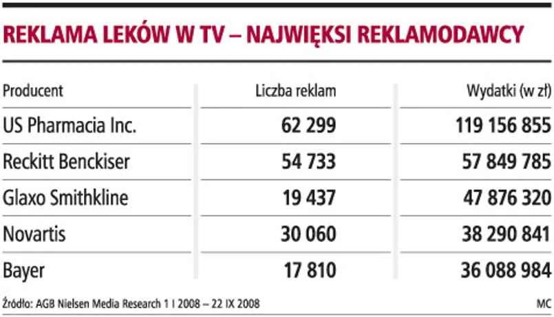 Na razie nie oszczędzają oni na reklamie. Tylko w telewizjach, czyli medium o największym zasięgu wykorzystywanym najczęściej do sprzedaży, w tym roku branża wydała ponad 600 mln zł, wynika z danych AGB Nielsen Media Research (od 1.01 do 22.09), przygotowanych dla GP. W porównaniu z tym samym okresem roku ubiegłego to wzrost o 11,7 proc. W sumie producenci leków zapłacili w tym roku już za 335,6 tys. spotów reklamowych.