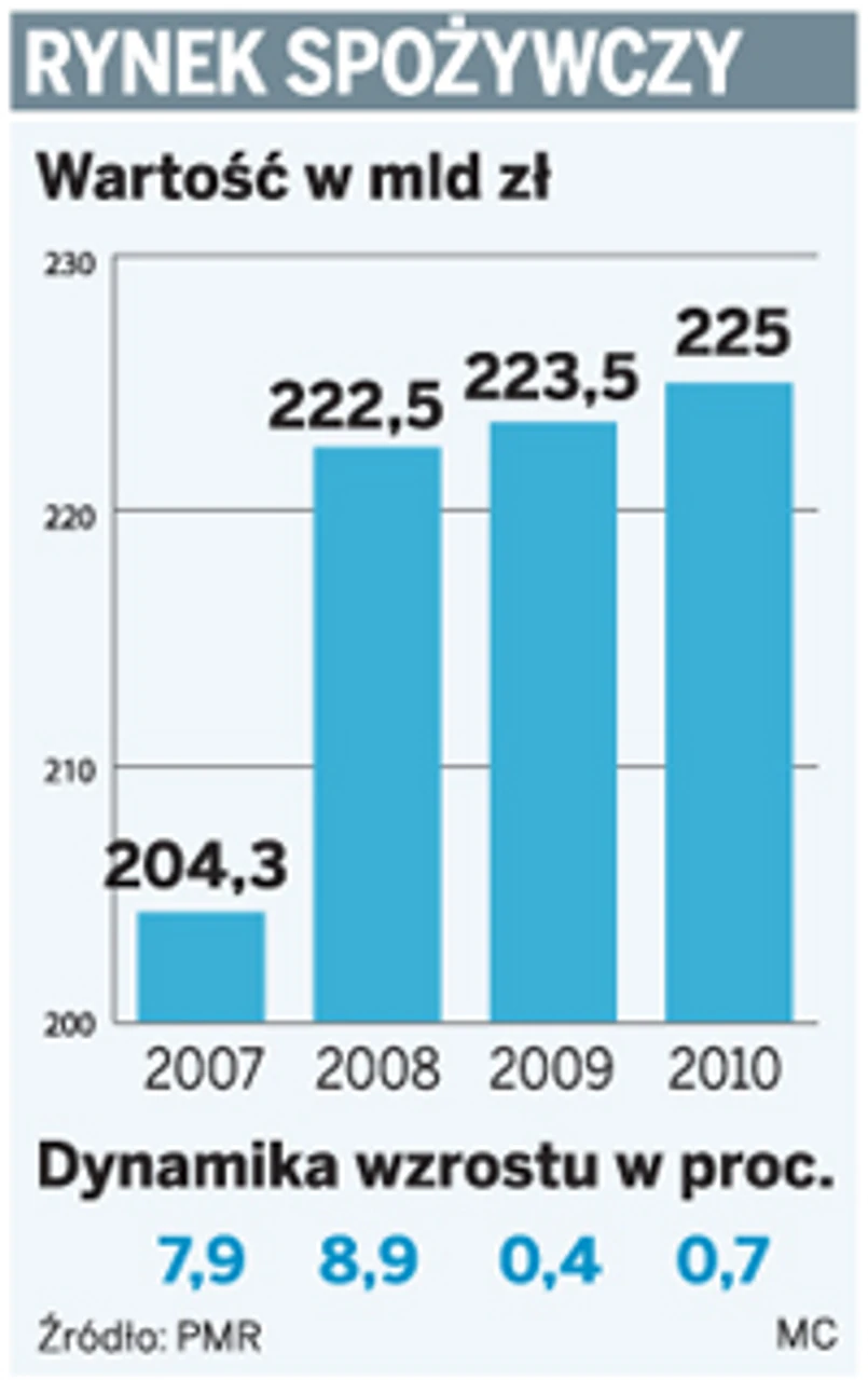 W 2010 roku wartość rynku spożywczego ma wynieść 225 mld zł. Oznacza to zaledwie 0,7-proc. wzrost w stosunku do tego roku (223,5 mld zł).