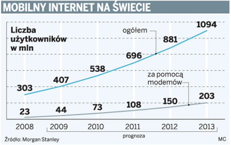 – Mobilny internet jest pierwszą od czasów SMS usługą, która podbiła rynek masowy – twierdzi firma badawcza Ovum. Analitycy Morgan Stanley dodają, że liczba użytkowników mobilnego internetu rośnie szybciej niż stacjonarnych łączy internetowych.