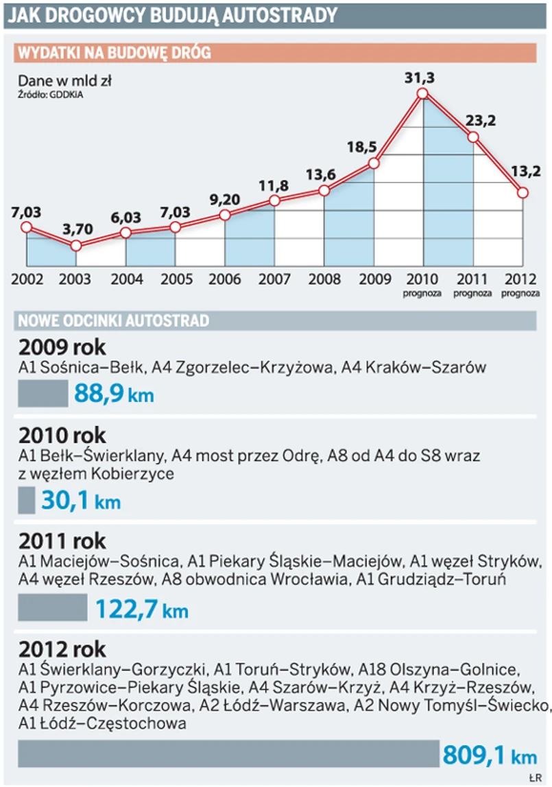 – W 2010 roku na budowę nowych dróg przeznaczymy 31,3 mld zł, a rok później 23 mld zł. Takich środków na drogową infrastrukturę nie było jeszcze nigdy. W kolejnych latach Polska będzie wielkim placem budowy – mówi Lech Witecki, dyrektor Generalnej Dyrekcji Dróg Krajowych i Autostrad.