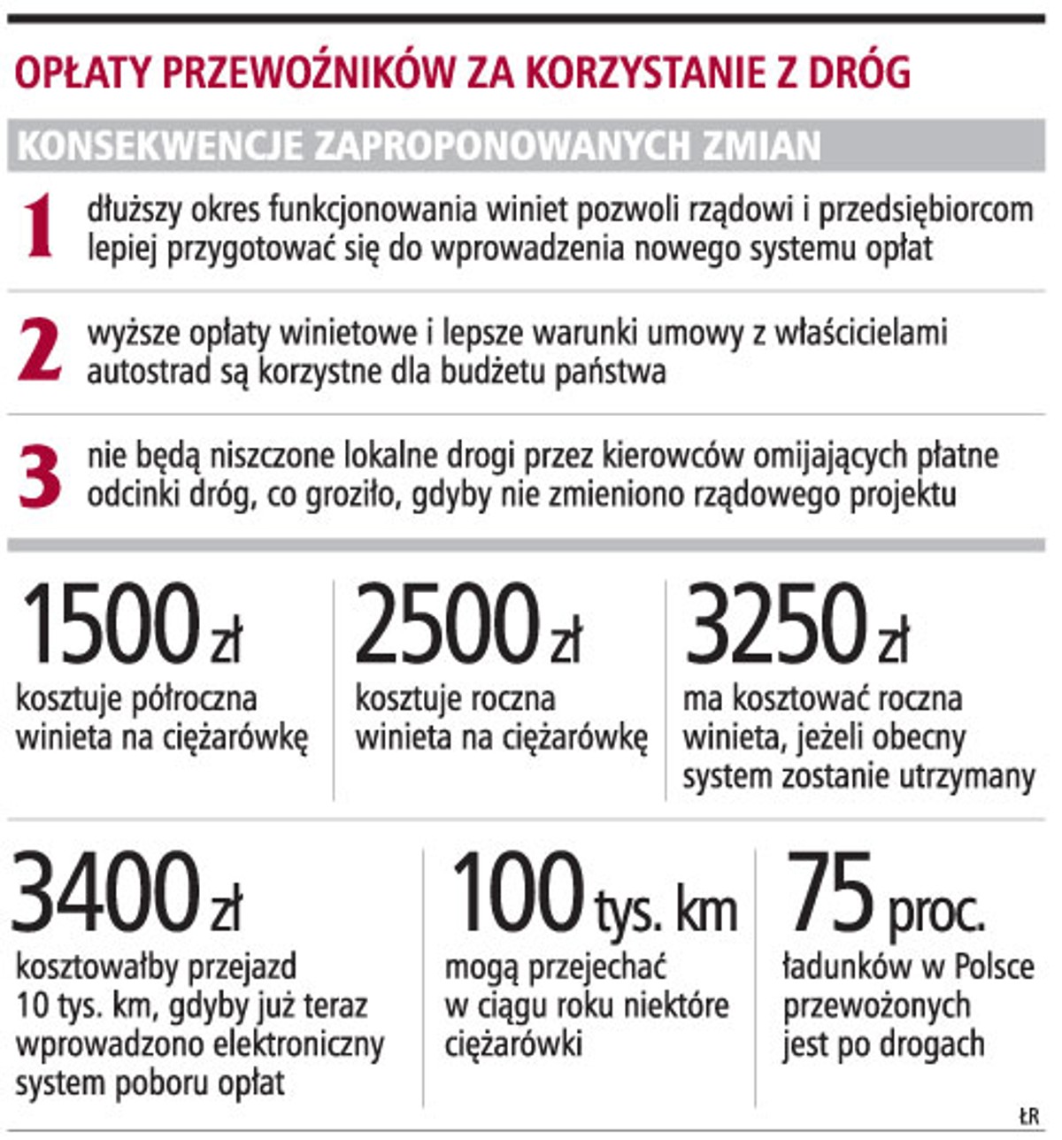 - Posłowie uznali, że rządowa propozycja to droga donikąd. Powstałoby więcej szkód niż pożytku - podkreśla Tomasz Rejek. Dodaje, że przewoźnicy nie chcieli się godzić na jeżdżenie zaledwie po odcinkach dobrych dróg i autostrad. Liczy, że do lipca 2011 r. powstaną nowe autostrady i drogi ekspresowe, które usprawnią przejazd ciężarówek.