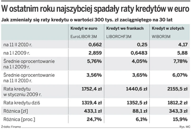 Więcej informacji: W ciągu roku raty kredytów hipotecznych w euro obniżyły się nawet o 25 proc.