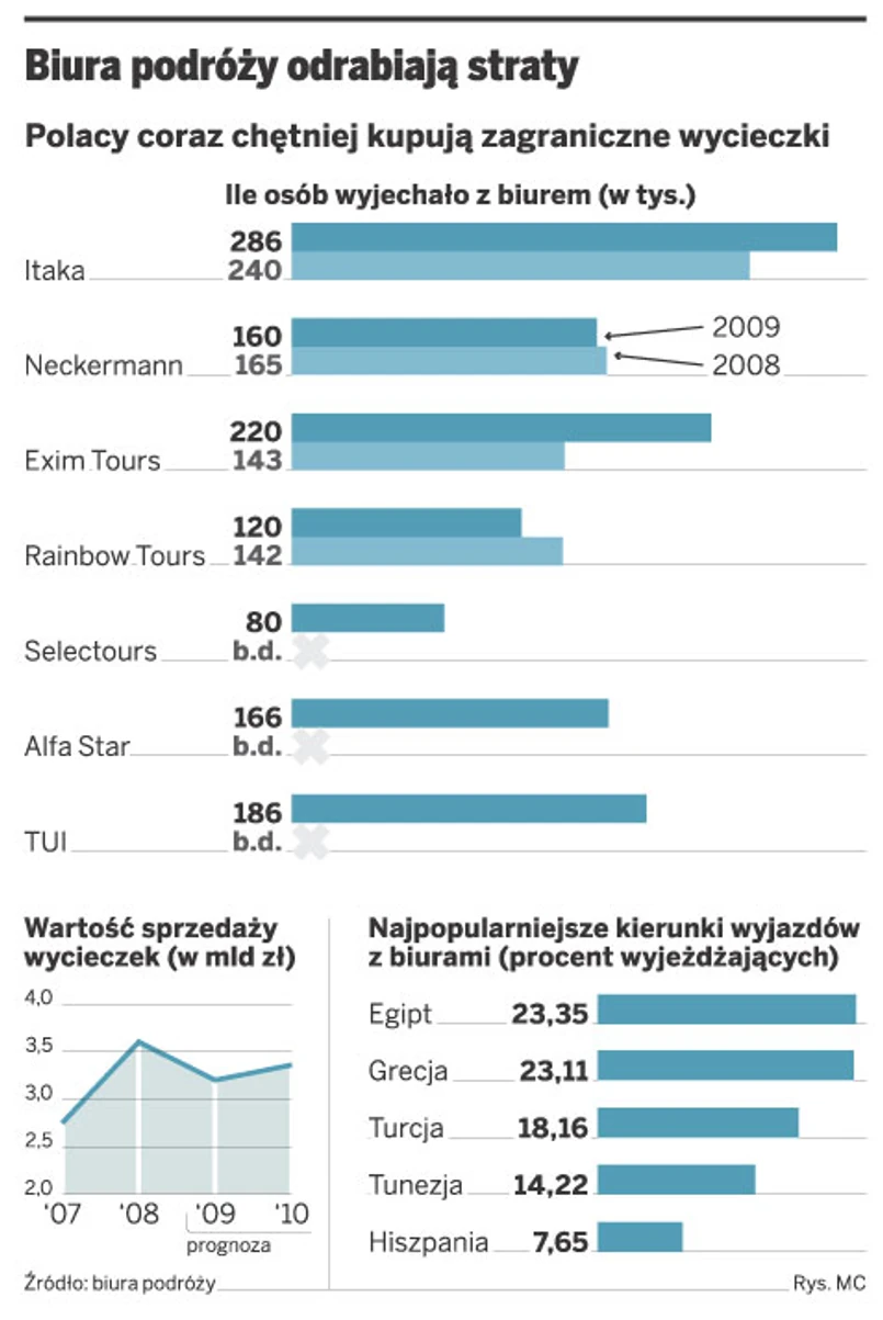 Wysoki popyt nie zachęca touroperatorów do obniżania cen. Chociaż złoty się umacnia, a ceny wycieczek były kalkulowane według wysokich kursów euro z II połowy 2009 r., to wolą utrzymać wyższe ceny. Ubiegły rok wiele biur zakończyło ze stratą, a najbliższy letni sezon ma być okazją do odrobienia kiepskich wyników.