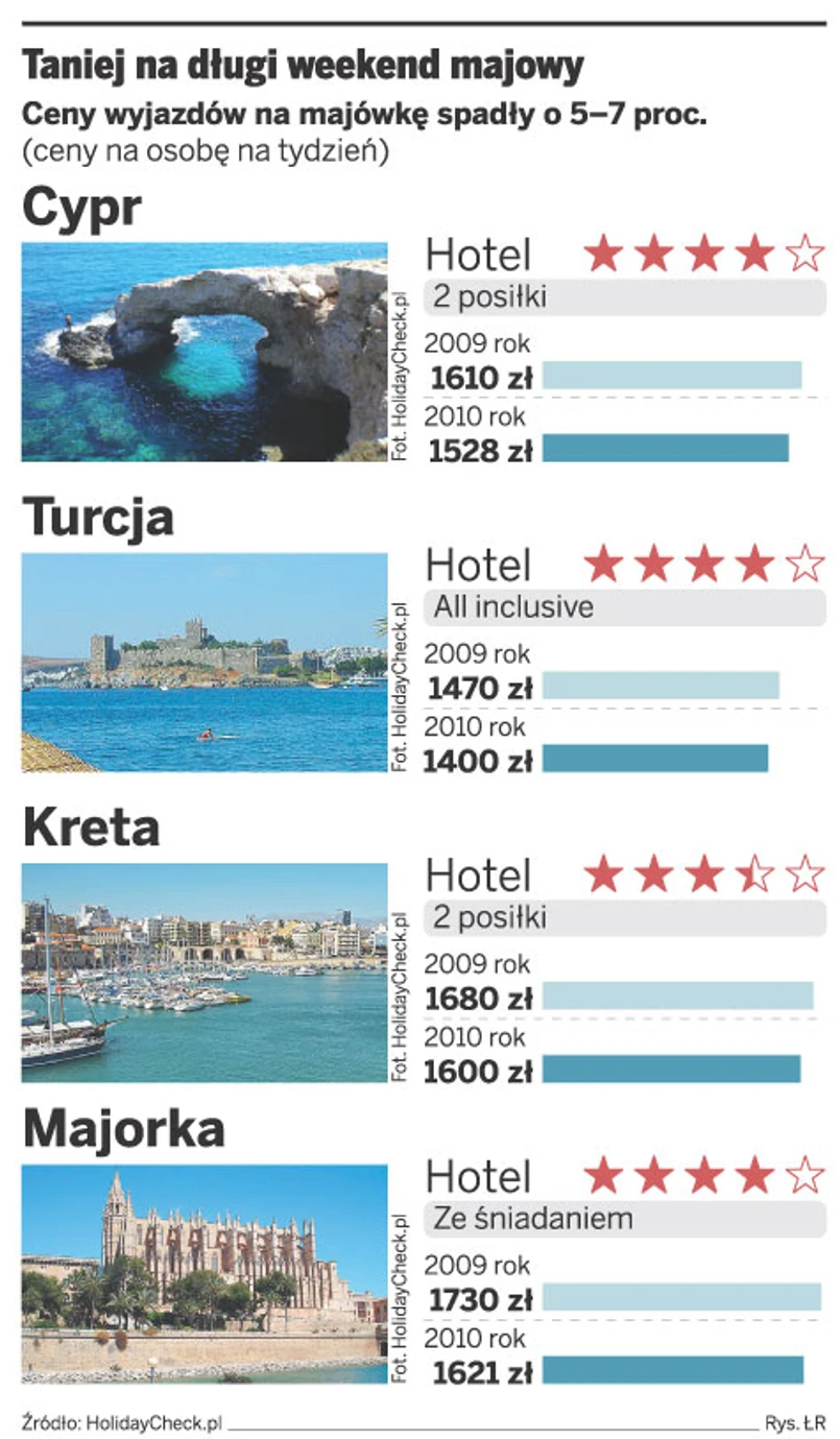 Osoby, które dopiero teraz postanowiły zarezerwować wyjazd na majówkę, będą miały trudności w znalezieniu wolnego miejsca. Do tego wybór został ograniczony do hoteli o niższym standardzie. Hotele cztero- i pięciogwiazdkowe sprzedawały się bowiem najlepiej.