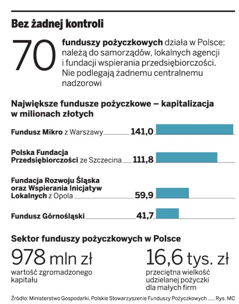 Fundusze pożyczkowe to jeden z nielicznych sektorów finansowych, który znajduje się poza wszelkim nadzorem. A chodzi o niemal 1 mld zł. W tym roku do funduszy ma trafić nawet miliard złotych z puli, którą Bruksela przyznała regionom na lata 2007–2013.