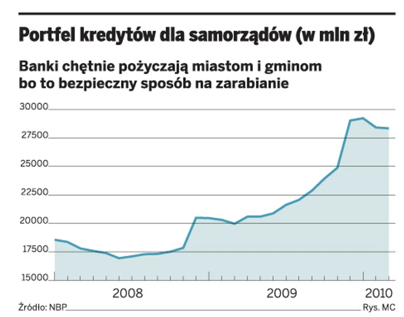 Powodem jest spadek wartości portfela kredytowego większości banków, jaki nastąpił w 2009 r. Sposobem na bezpieczną jego odbudowę są właśnie pożyczki dla samorządów, w dobie niemrawego ożywienia gospodarczego uważane za bezpieczniejsze od kredytów dla firm. Dlatego walka o ten segment się zaostrza. Do rywalizacji o pożyczki dla samorządów staje coraz więcej banków. We wspomnianym przetargu w Krakowie wzięło udział aż sześć banków, podczas gdy zwykle konkurują 3 – 4 instytucje.