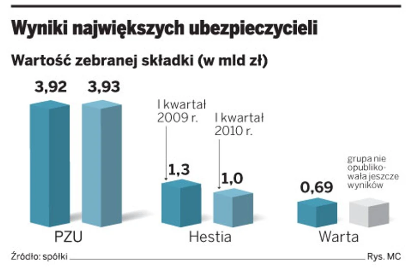 W pierwszym kwartale 2010 r. Grupa Warta miała 1 mld zł zebranych składek. Z tego 555 mln zł przypadło na jej część życiową, a 499 mln zł na spółkę majątkową. Ta ostatnia zakończyła kwartał stratą w wysokości 20 mln zł.