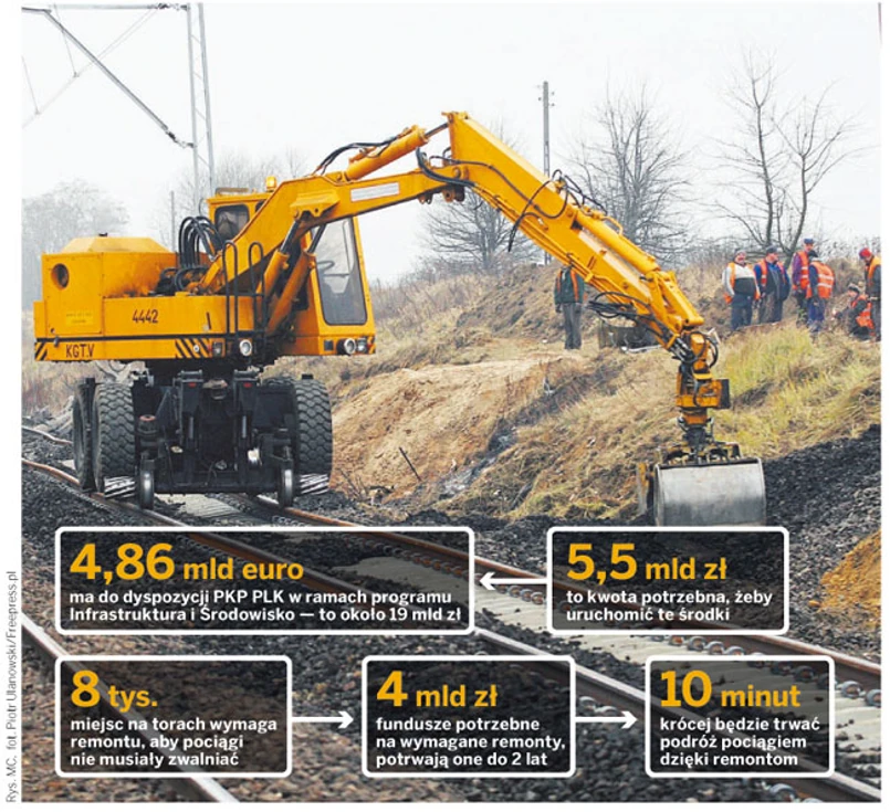 Polsce powoli zaczyna zaglądać w oczy groźba utraty dofinansowania z Unii Europejskiej na kolejarskie projekty. PKP Polskie Linie Kolejowe, które modernizują tory, nie radzą sobie z potężnymi inwestycjami. Z ogłaszanych w połowie 2007 roku planów modernizacji głównych linii kolejowych nic już nie zostało. Wczoraj pisaliśmy, że zamiast planowanych na ten rok rekordowych 5,7 mld zł na inwestycje spółce uda się wydać najwyżej połowę.
