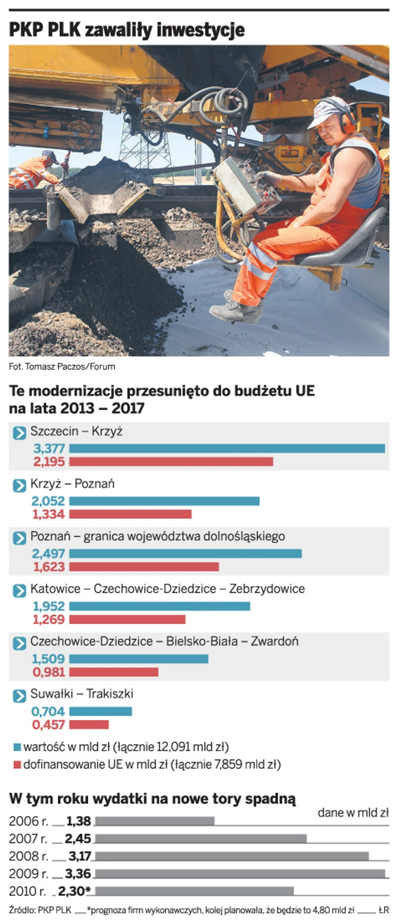 Nasze informacje potwierdził Robert Kuczyński z Centrum Realizacji Inwestycji PKP PLK. To specjalnie wyodrębniona część spółki (zatrudnia ponad 1 tys. pracowników), która miała rozruszać kolejowe inwestycje. Nic z tego nie wyszło.