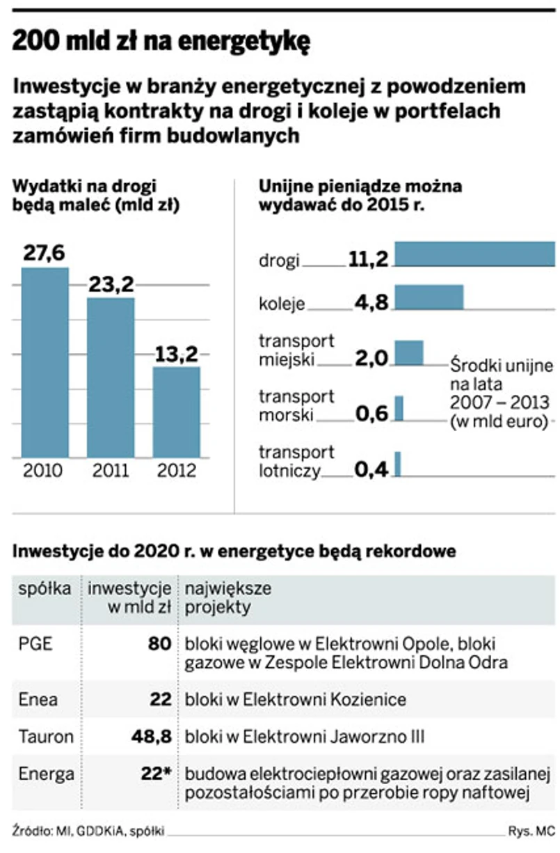 Pieniądze z Unii Europejskiej wkrótce się skończą, a deszcz dotacji w kolejnym budżecie może się już nie powtórzyć. Ale firmy budowlane nie muszą się martwić. Ruszają gigantyczne inwestycje w energetyce.