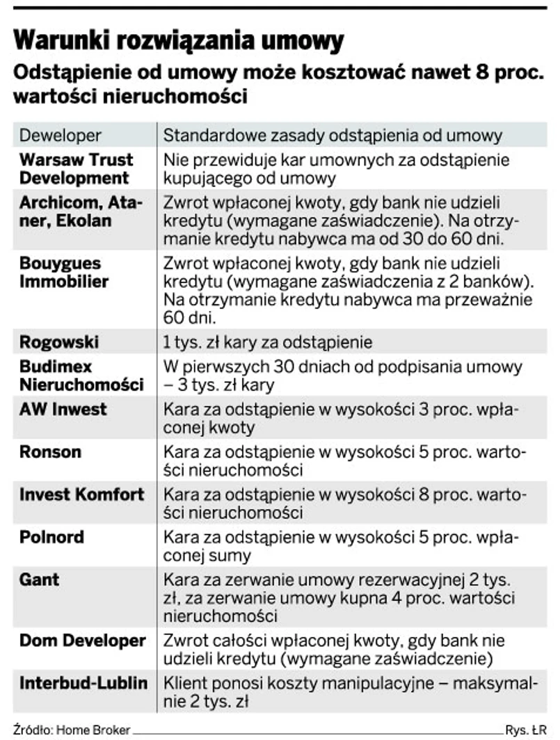 Zdaniem ekspertów jest to możliwe, gdyż jest coraz mniej rezygnacji. – Lepiej nie obciążać klienta specjalnymi karami, bo opinia na rynku jest ważniejsza niż taka opłata – mówi Tomasz Grodzki, wiceprezes Interbud-Lublin.