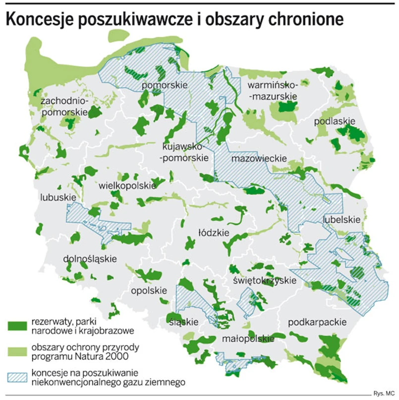 – Jeżeli znajdziemy w Polsce gaz i firmy będą chciały prowadzić dalsze poszukiwania na koncesjach pokrywających się z obszarami Natura 2000, sam fakt, że są to tereny chronione, nie zatrzyma inwestycji – przekonuje jednak Henryk Jezierski, wiceminister środowiska i główny geolog kraju.
