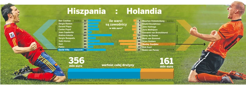 W niedzielnym finale zmierzą się zespoły, które słyną z widowiskowej gry. Do tej pory zarówno Holandia, jak i Hiszpania w mistrzostwach świata miały wielkiego pecha. Pomarańczowi w latach 70. mieli najlepszy zespół na świecie – z genialnym Johanem Cruyffem, piłkarzem wyprzedzającym swoją epokę – a mimo to nie udało im się zdobyć mistrzostwa. W 1974 i 1978 r. Holendrzy dochodzili do wielkiego finału, ale dwa razy przegrywali z gospodarzami imprezy – najpierw z Niemcami, a później z Argentyną.