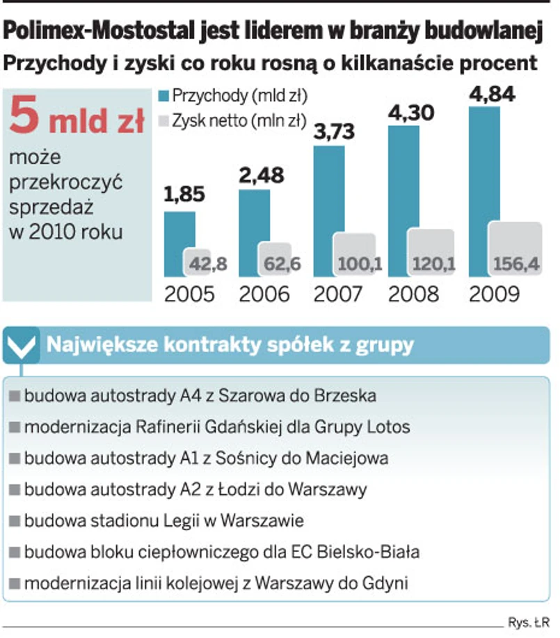 Jeszcze podczas wakacji wartość realizowanych kontraktów przez Polimex- -Mostostal może przekroczyć 10 mld zł. Tylu umów nie uzbierał jeszcze żaden z konkurentów w branży.