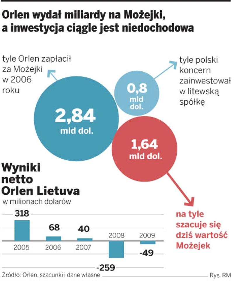 Pierwszym poważnym sygnałem, że przejęcie Możejek mogło być błędem, był zły stan techniczny rurociągów doprowadzających rosyjską ropę do litewskiej rafinerii. Rosjanie zawiesili dostawy surowca i do tej pory Możejki muszą sprowadzać go droższą drogą morską.