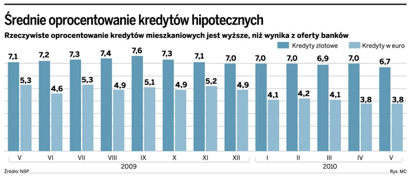 Zdaniem ekspertów czasami różnica między teoretycznym oprocentowaniem a rzeczywistym sięga 1 pkt proc. To oczywiście przekłada się na wysokość miesięcznych rat.