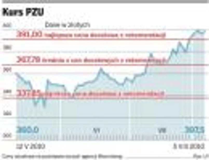 Do wzrostu kursu ubezpieczyciela przyczyniła się też letnia poprawa nastrojów na giełdach. Od początku lipca cena PZU zwyżkowała o ponad 13 proc., ale inwestorzy równie chętnie kupowali akcje pozostałych spółek z pierwszej piątki w WIG20. KGHM wzrósł np. o ponad 20 proc., a PKN o ok. 17 proc.
