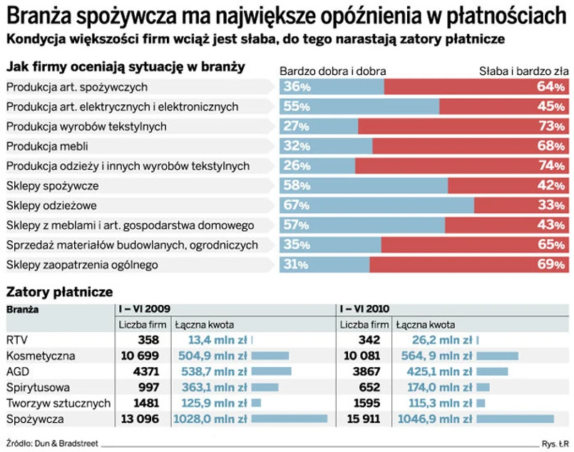 Problemy tej branży to efekt spadku siły nabywczej Polaków. Firmom zaczyna brakować pieniędzy na regulowanie bieżących zobowiązań.