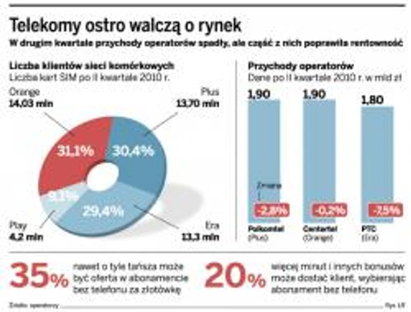 Zarówno Orange, jak i Plus poprawiły jednak swoją rentowność w drugim kwartale. Wpłynęła na to m.in. oferta bez telefonów.
