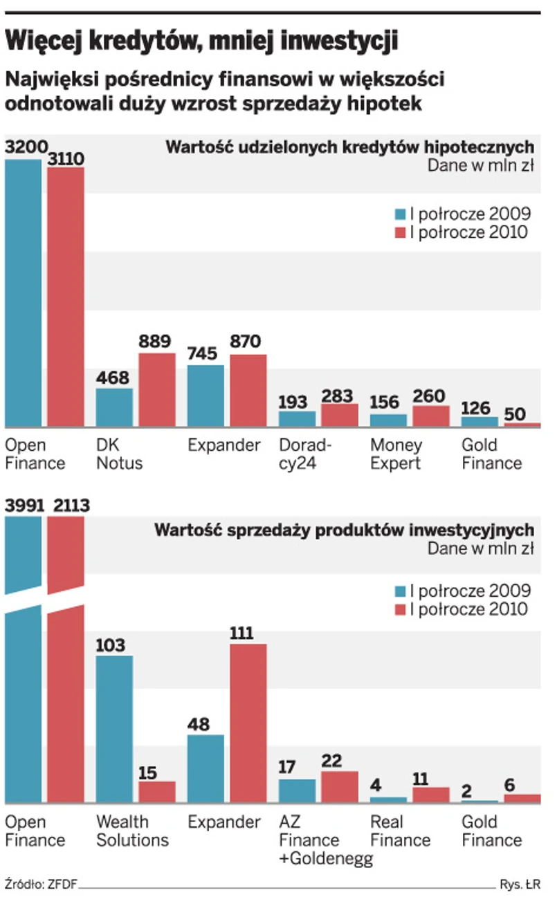 Nieco gorzej firmy poradziły sobie ze sprzedażą produktów inwestycyjnych. Poza dwoma – Open Finance i Wealth Solutions – które miały świetny wynik, zdecydowanie lepszy niż w 2009 r.