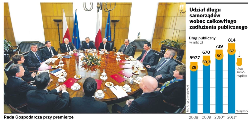 Niemniej deficyt wywołany zadłużaniem się samorządów wyniesie w 2010 r. 10 mld, ale w przyszłym już 17 mld zł – a to ponad 1 punkt procentowy PKB. W tym samym czasie deficyt budżetu będzie malał z niemal 49 mld (czyli ponad 3 proc. PKB) do 40,2 mld zł. Dyscyplina w finansach samorządowych jest słabsza niż w administracji rządowej. – W czasie, gdy rząd zamraża wzrost płac, wynagrodzenia urzędników samorządowych wzrastają o 8 proc. A jest ich dwa razy więcej niż w administracji rządowej – mówi Bogusław Grabowski, były członek Rady Polityki Pieniężnej, dziś członek Rady Gospodarczej przy premierze.