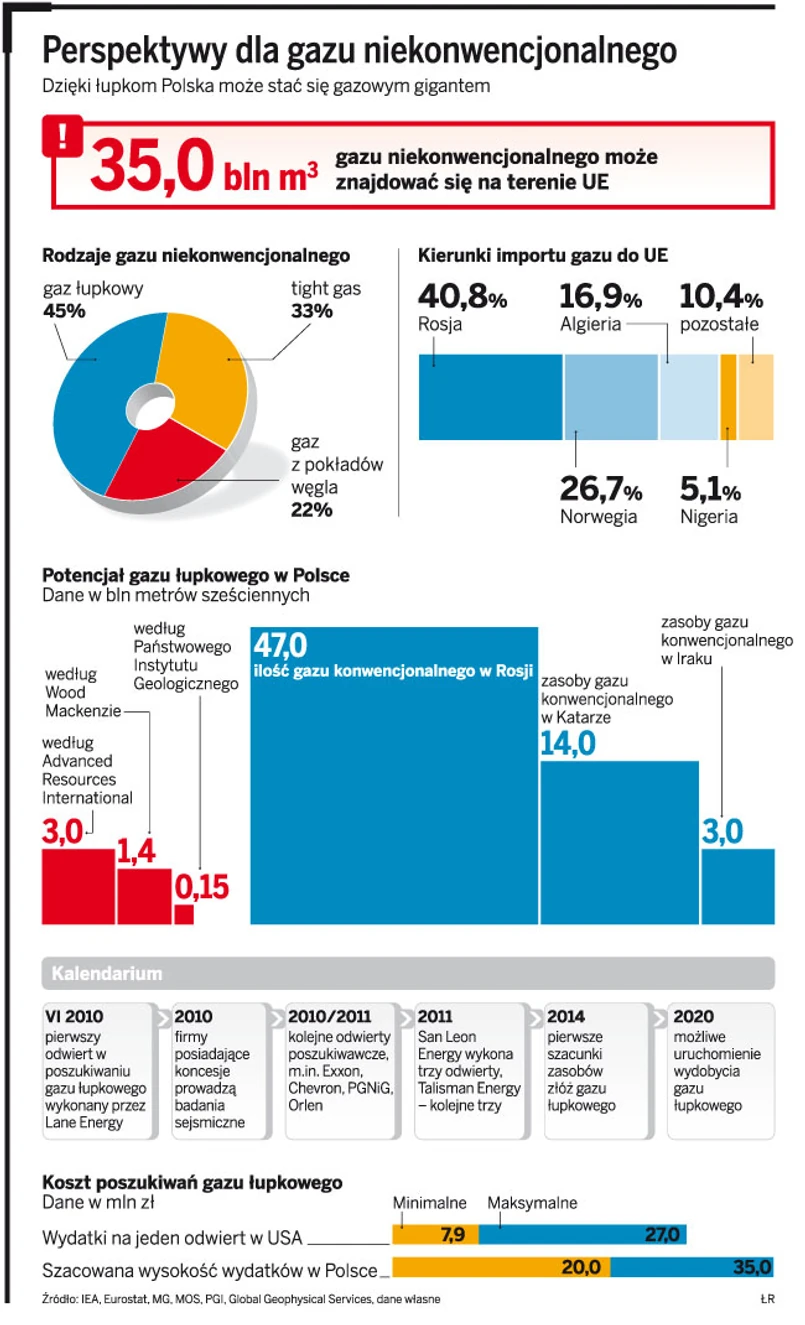 Ich zdaniem Polska nie jest wcale aż taką gazową potęgą. Państwowy Instytut Geologiczny szacuje, że w kraju może występować ok. 150 mld m sześc. gazu niekonwencjonalnego. To jednak i tak olbrzymia ilość surowca jak na nasze warunki. Obecnie wydobywamy bowiem rocznie zaledwie 4,1 mld m sześć. gazu konwencjonalnego. Jego zużycie zaś to około 14 mld m sześc. Niezależnie więc od wielkości złóż typu shale i tight, dodatkowe ilości surowca będą na wagę złota.