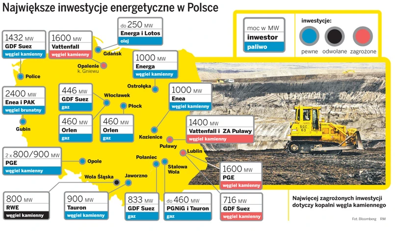 Według naszych informacji Polska Grupa Energetyczna PGE, największy producent elektryczności w Polsce, również będzie wycofywać się z projektów węglowych. Wojciech Topolnicki, wiceprezes PGE odpowiedzialny za inwestycje, lubi powtarzać, że koszty eksploatacji bloków gazowych są o wiele korzystniejsze. W porównaniu z węglowymi emitują o połowę mniej dwutlenku węgla, za który przyjdzie płacić wysokie podatki w postaci uprawnień do emisji. W związku z tym na straconej pozycji stoi najmniej zaawansowany projekt węglowy w PGE, czyli wspólna z polskim oddziałem francuskiego GDF Suez elektrociepłownia o mocy 1,6 tys. MW w Lublinie.