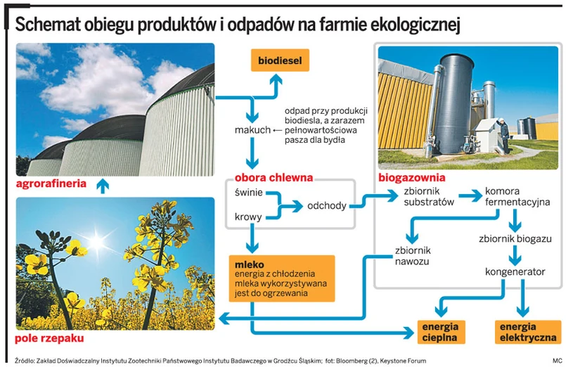 Od trzech lat działa tam już agrorafineria produkująca biodiesel z nasion rzepaku. Jego produktem ubocznym jest pasza białkowa dla hodowanych zwierząt. Krowy dają mleko, a ciepło odzyskiwane przy jego chłodzeniu wykorzystywane jest do ogrzewania gospodarstwa.